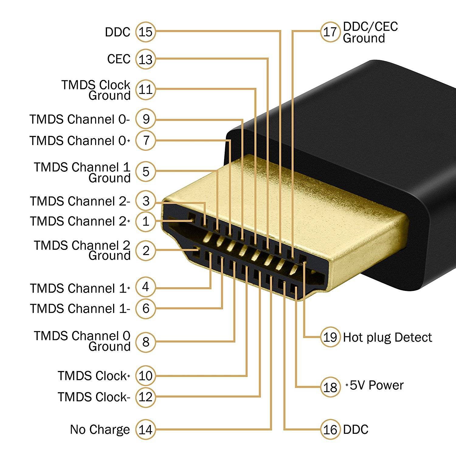 標(biāo)準(zhǔn)HDMI接口公頭引腳序號與定義圖解