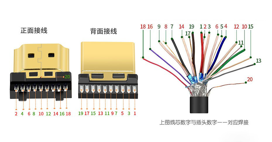 標(biāo)準(zhǔn)HDMI公頭焊接示意圖