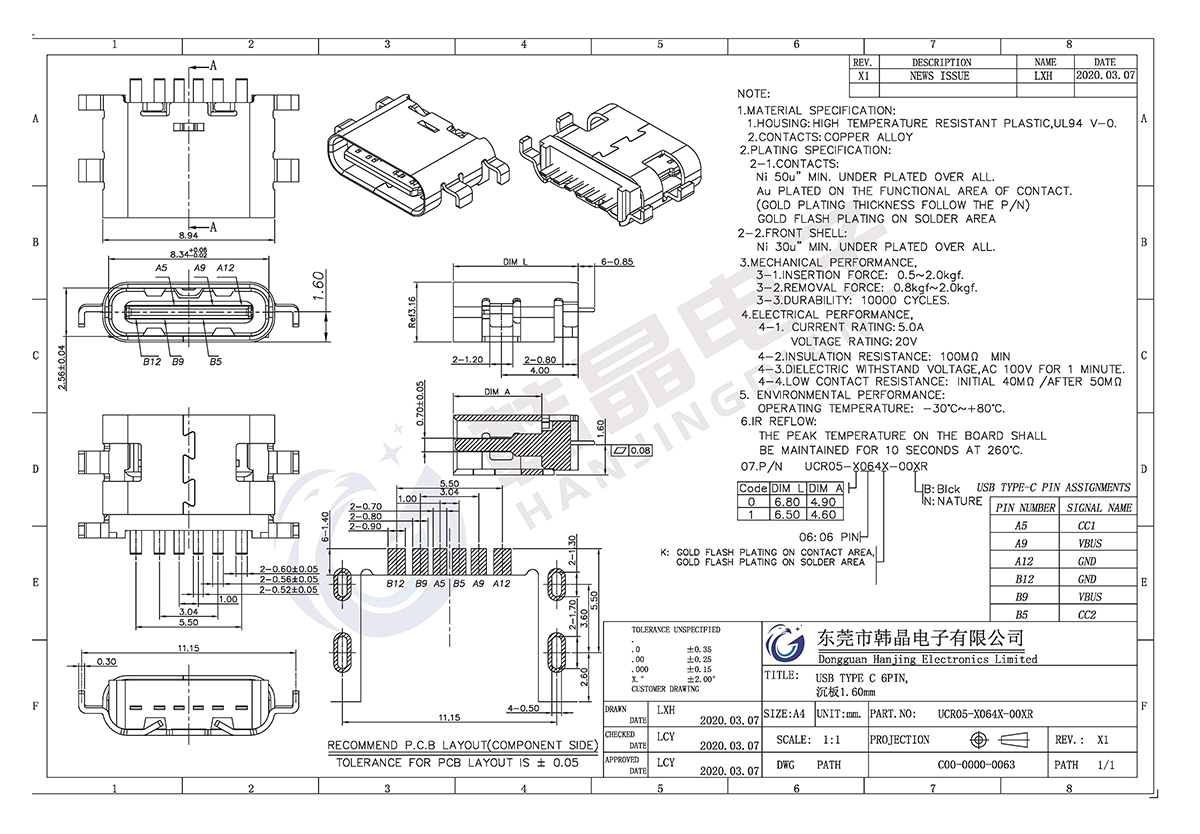 • 所屬分類:TYPE-C6PIN型系列