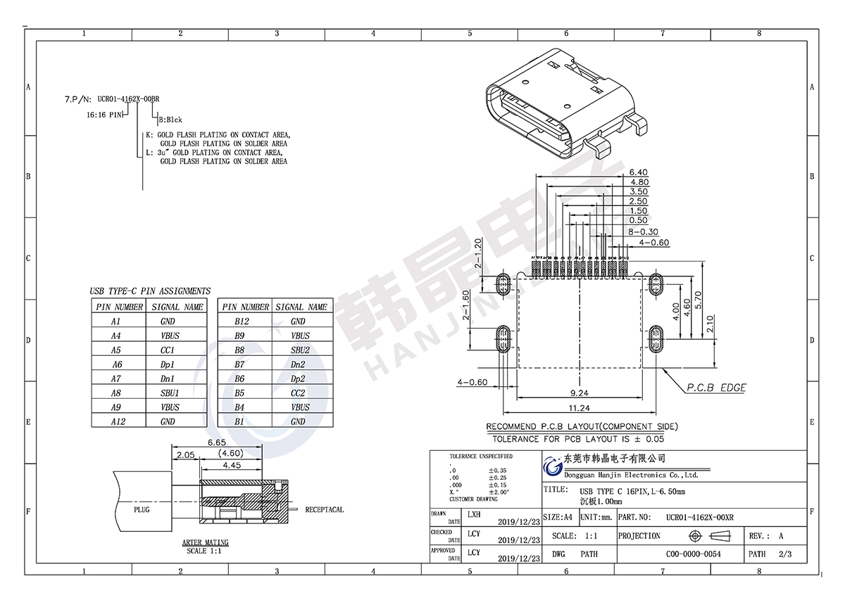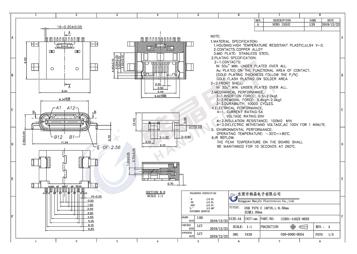 絕緣體材料: LCP,UL94V-0;COL0R;BLACK