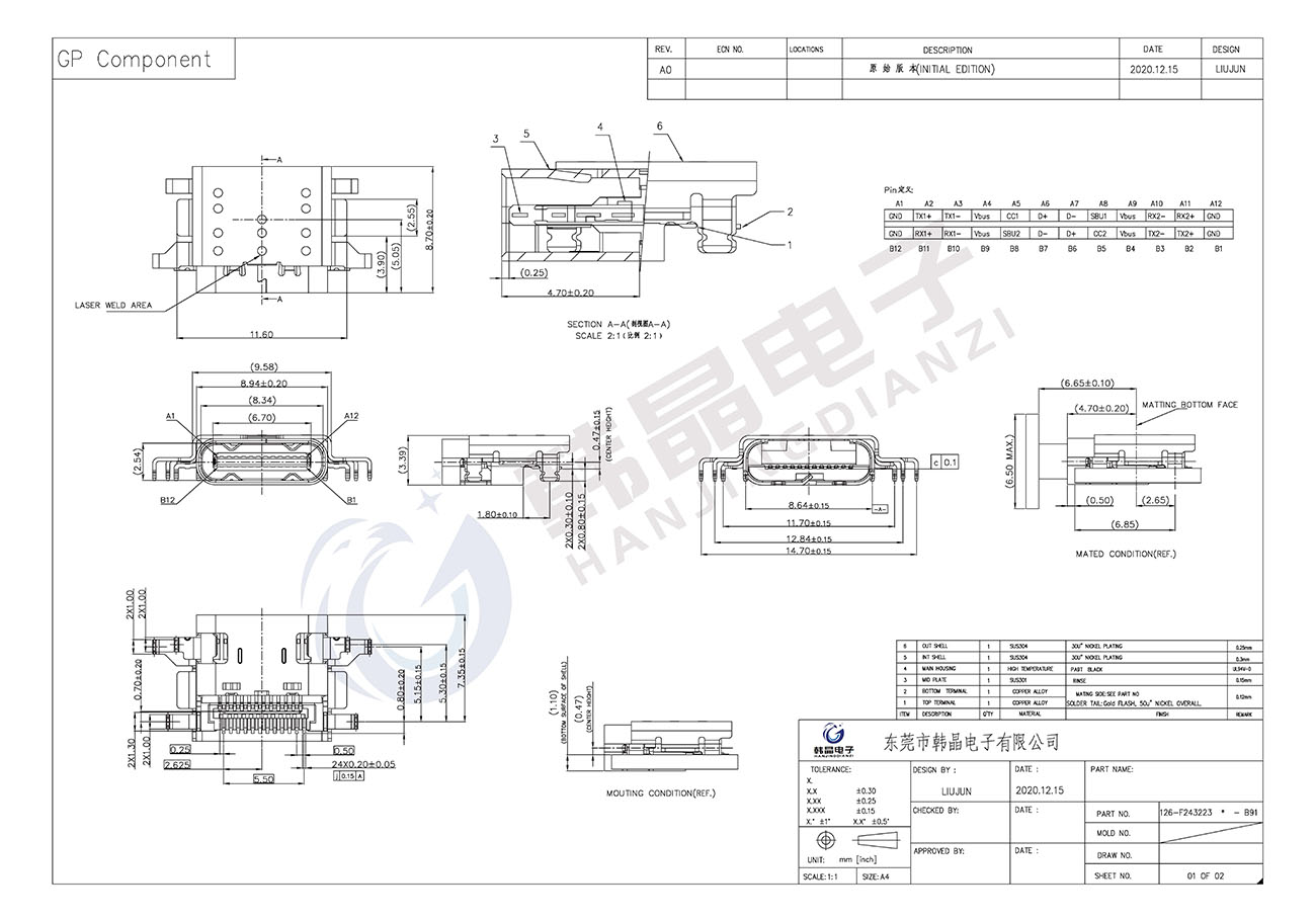 絕緣體材料: PA9T,UL94 V-0,BLACK