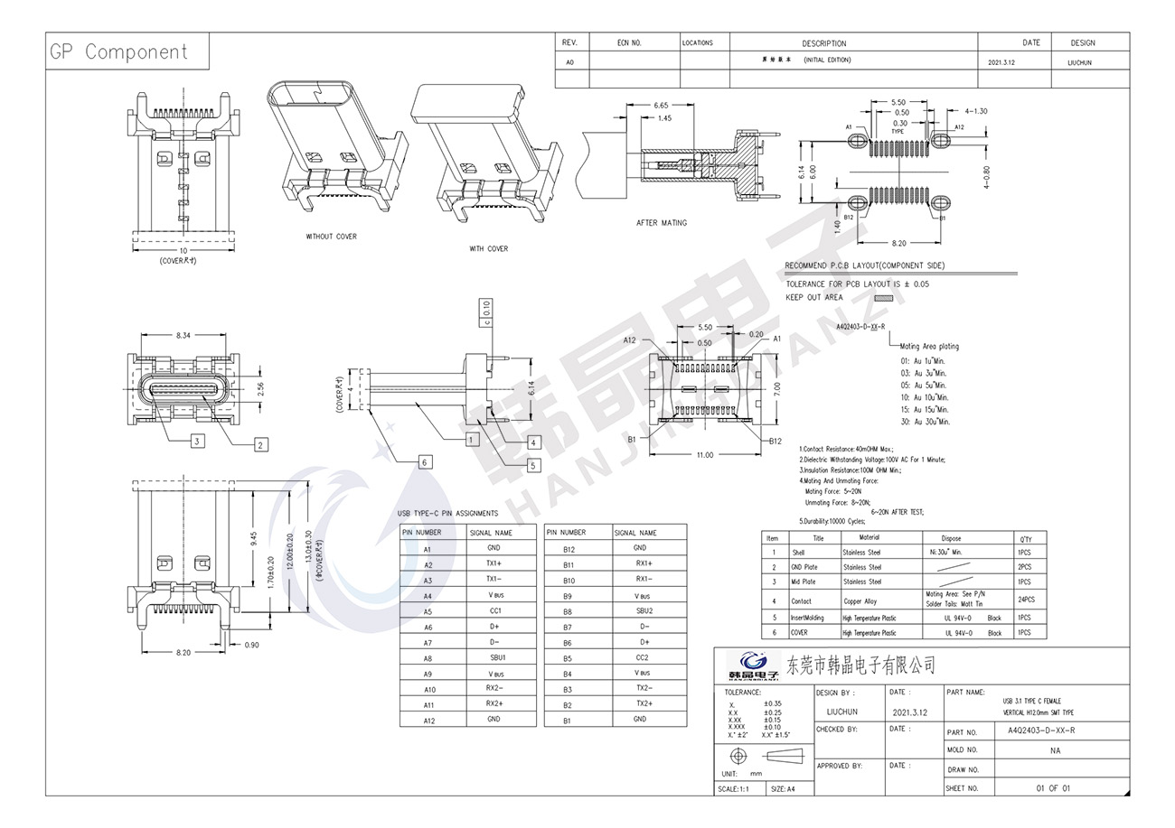 絕緣體材料: PA9T, ul94 v-0