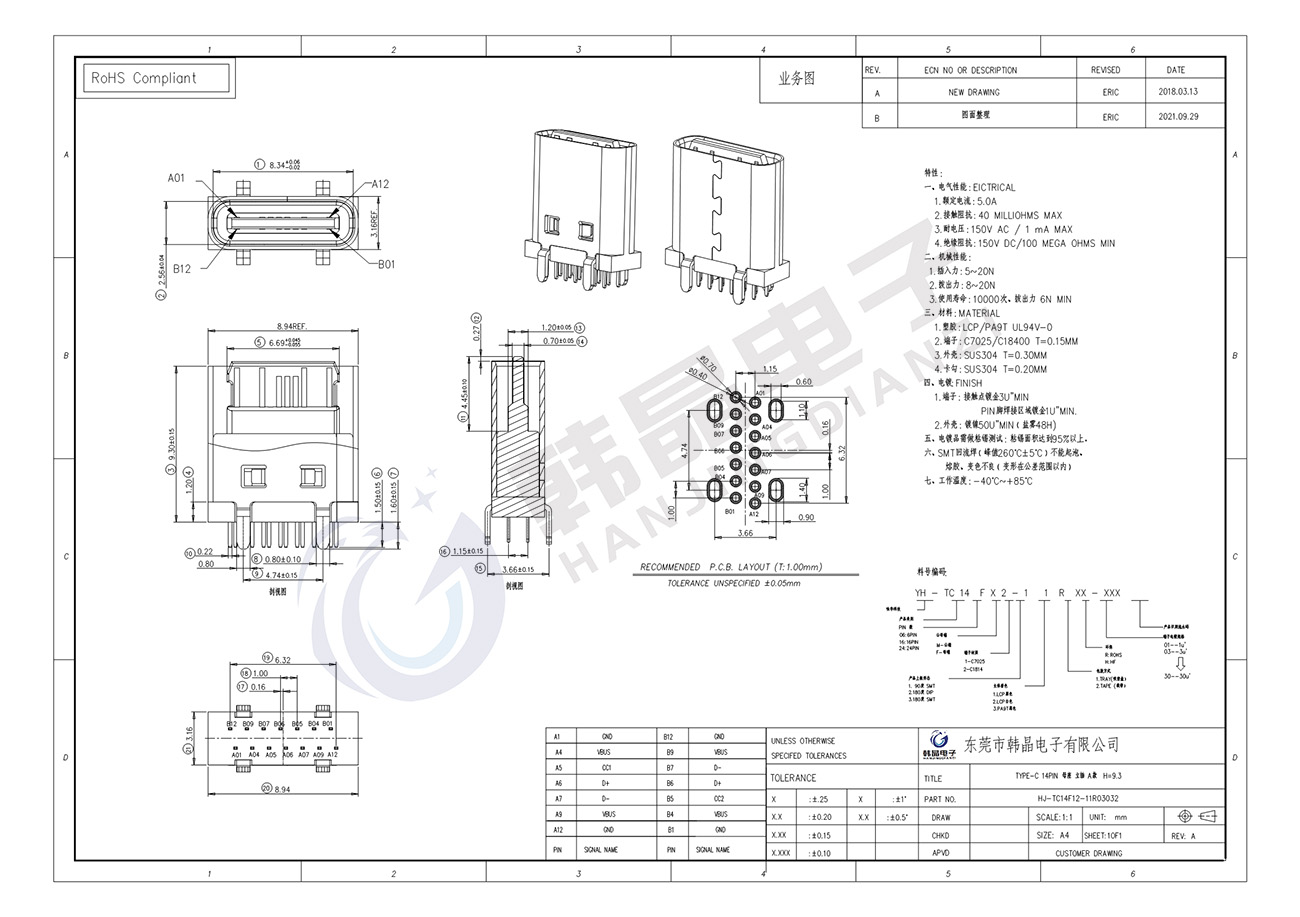 絕緣體材料: LCP, PA9T UL94 v-0