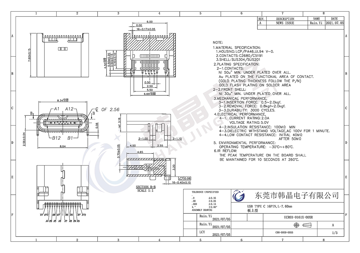 絕緣體材料: LCP,UL94V-0;COL0R;BLACK