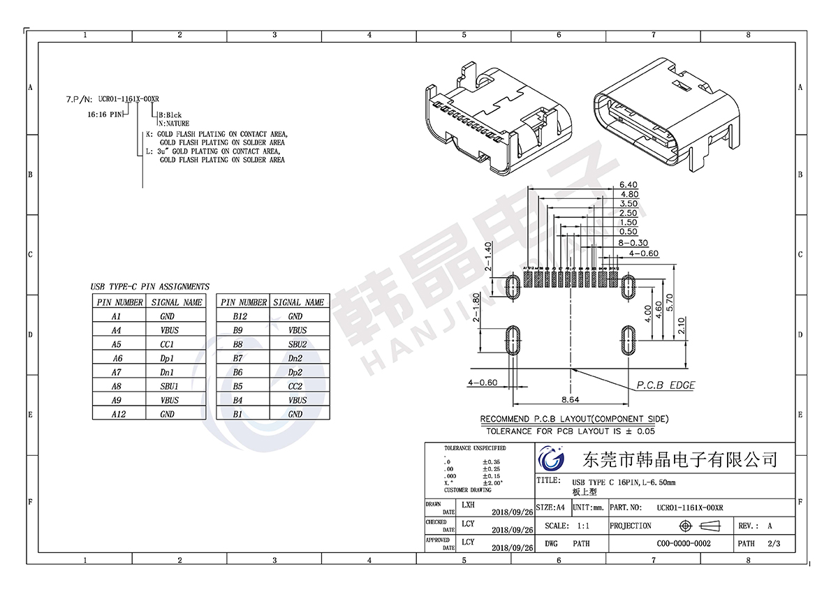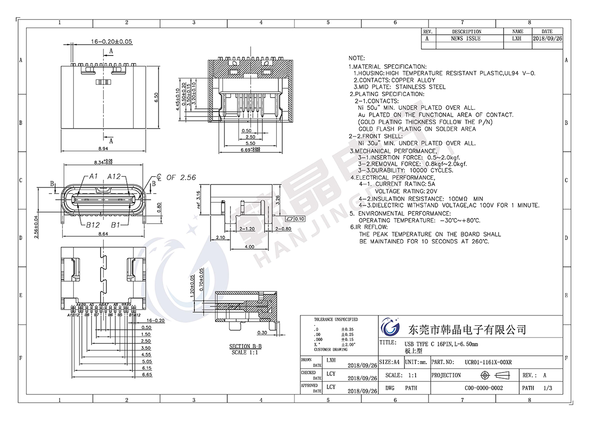 絕緣體材料: LCP,UL94V-0;COL0R;BLACK